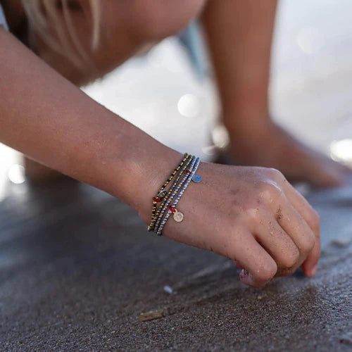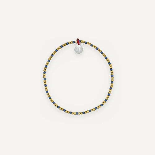 Le bracelet Bliss Gold 1 tour - Bleu pour femme associe des boules d'Hématite Gold à des perles Miyuki ultra fines de couleur bleue. Confectionné avec attention et respect, ce bijou vous est livré dans un pochon en coton écologique, soigneusement emballé dans un packaging respectueux de l’environnement.