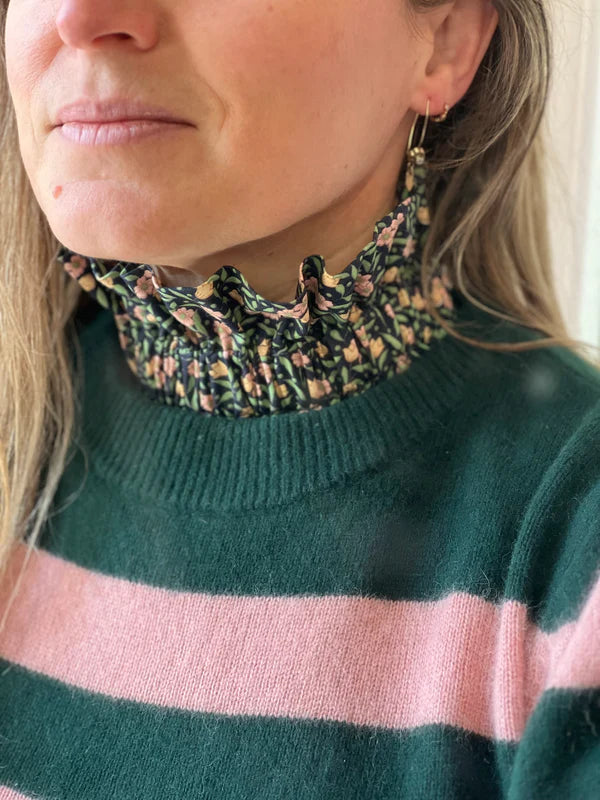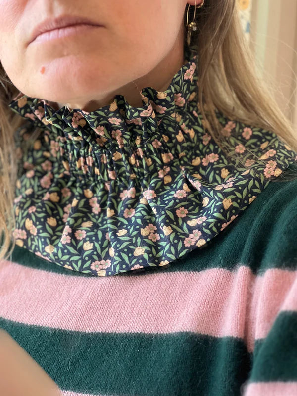 Ce col à motifs floraux délicats en rose, vert et ocre apportera une touche à la fois douce et audacieuse à votre style.