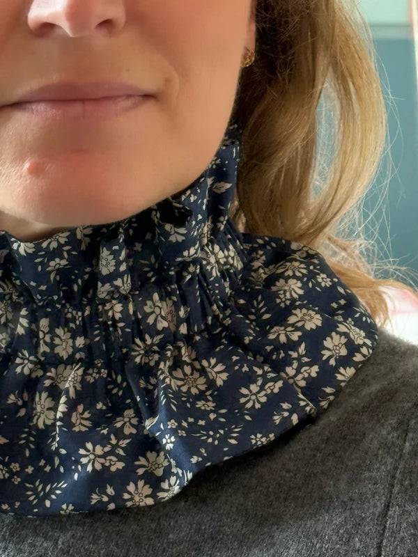 Ce col en Liberty Capel bleu marine présente un motif floral élégant et une couleur verte douce. Léger et doux, il s’adapte facilement à tous vos vêtements pour une touche chic et naturelle, toute l’année. Taille unique.