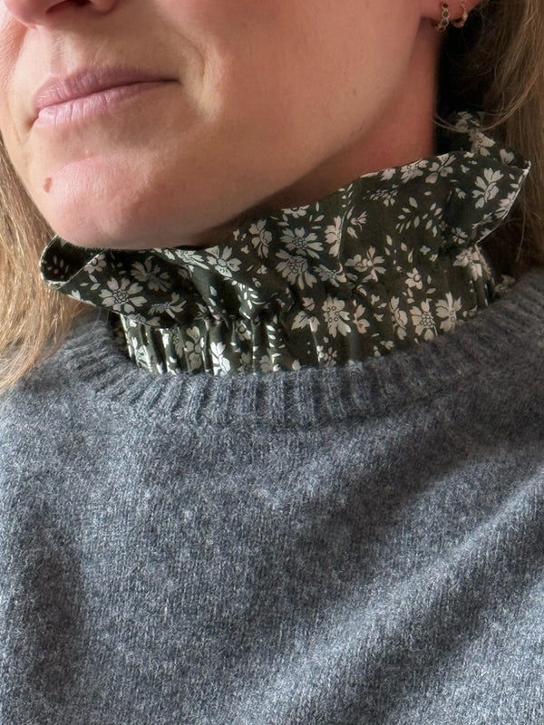 Ce col en Liberty Capel kaki présente un motif floral élégant et une couleur verte douce. Léger et doux, il s’adapte facilement à tous vos vêtements pour une touche chic et naturelle, toute l’année. Taille unique.