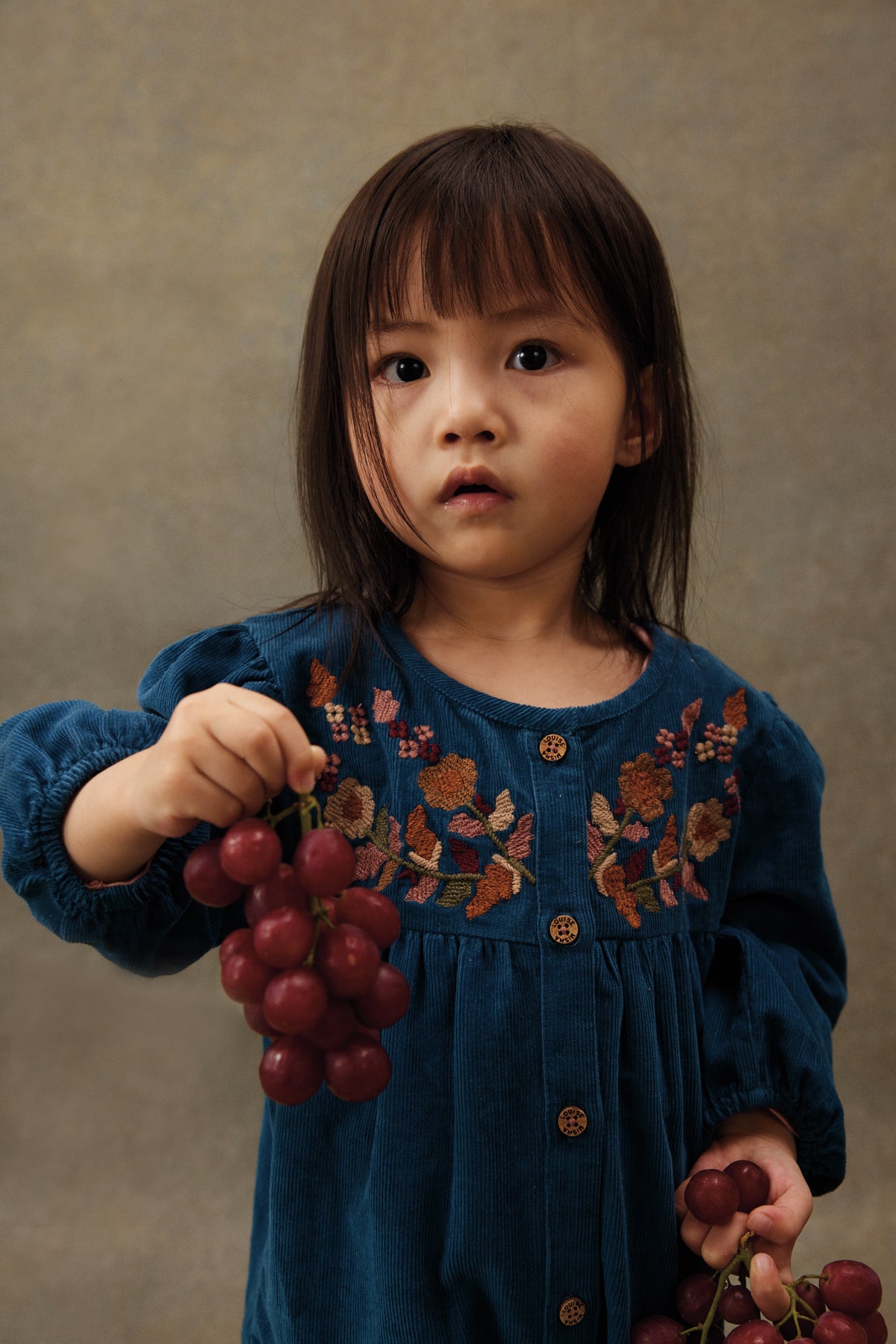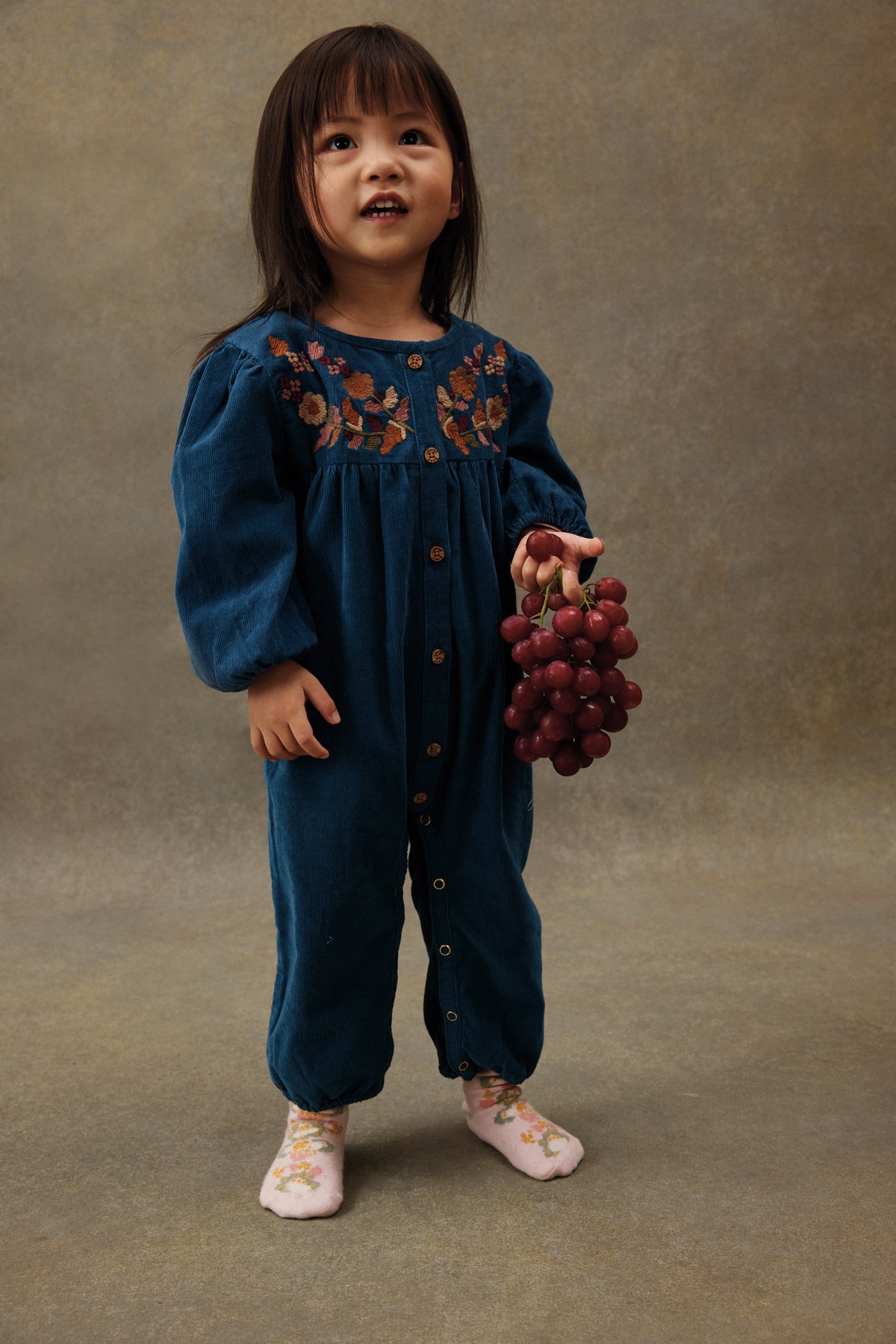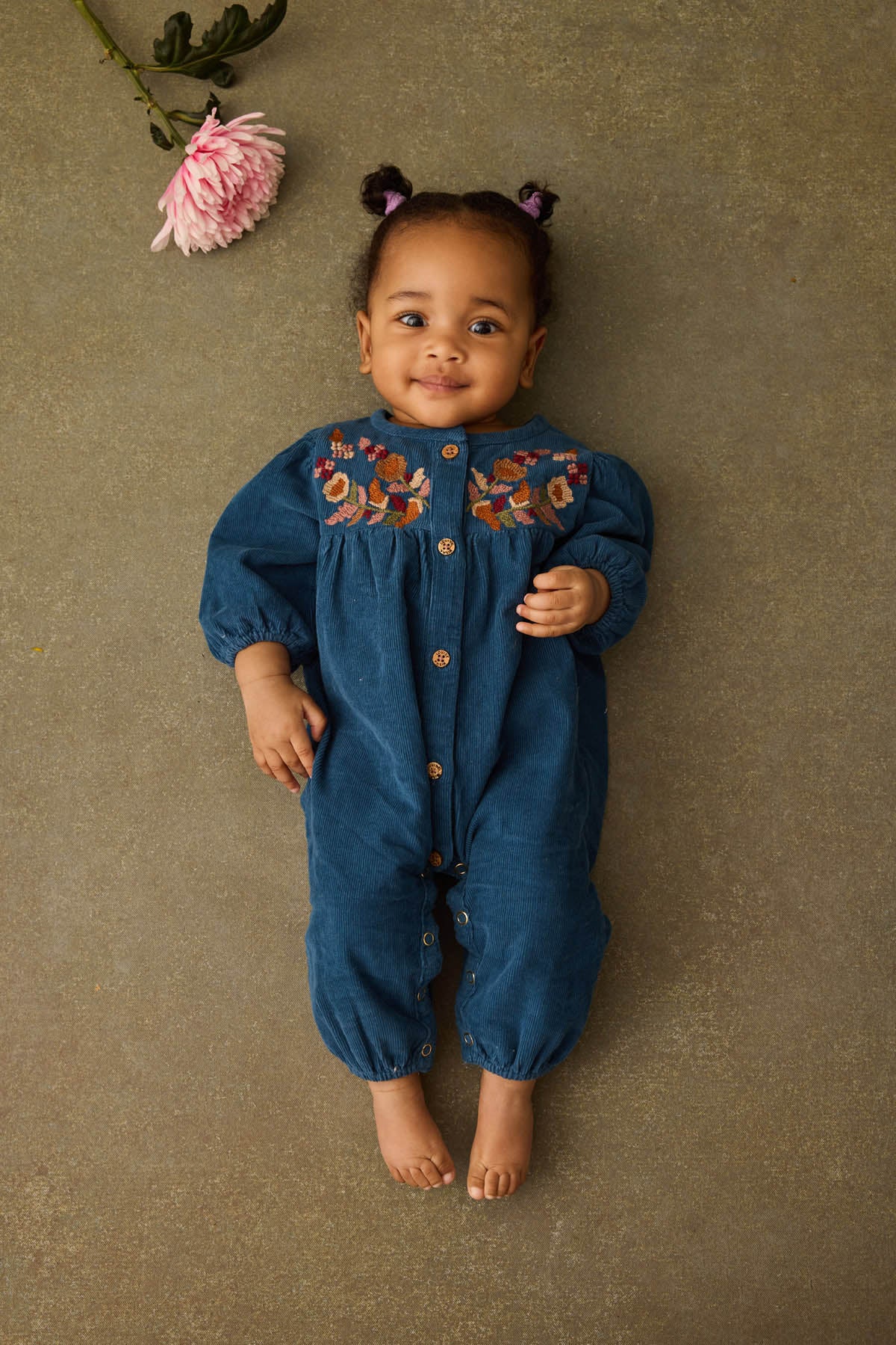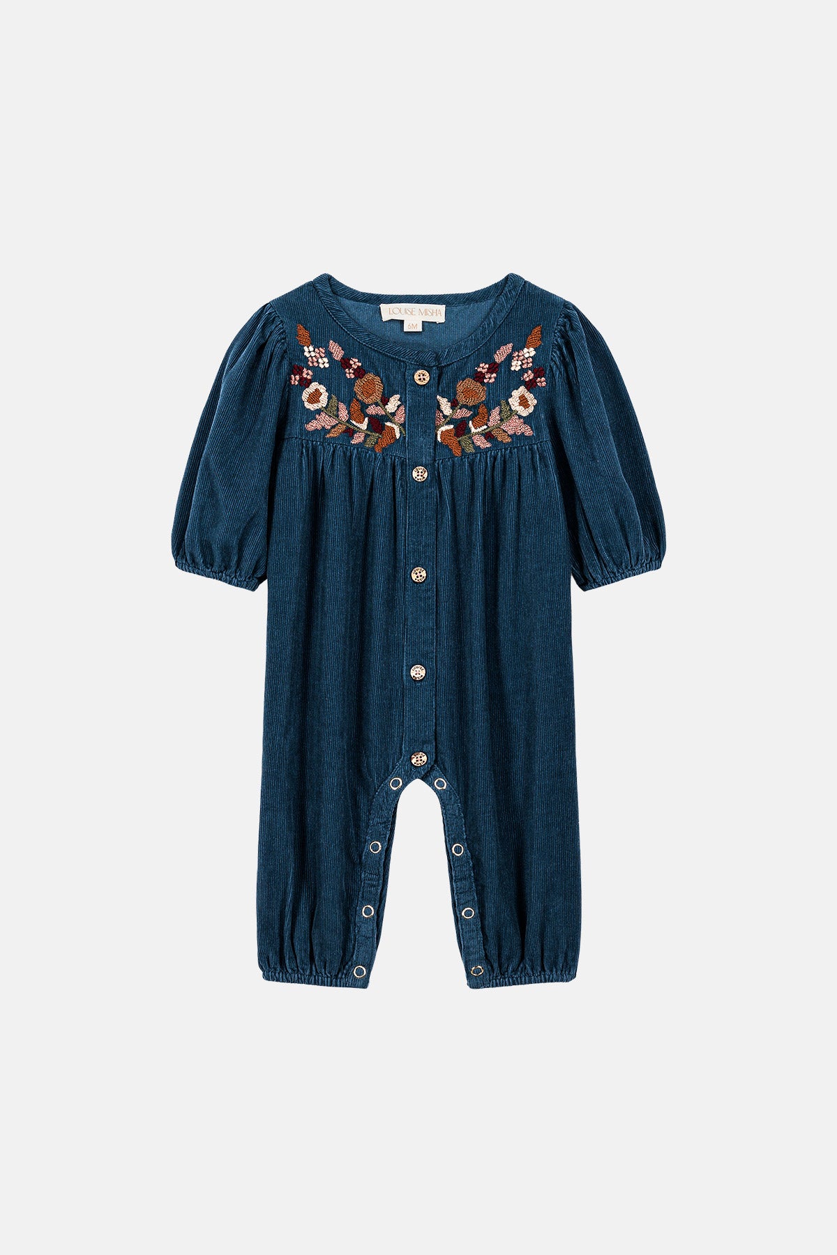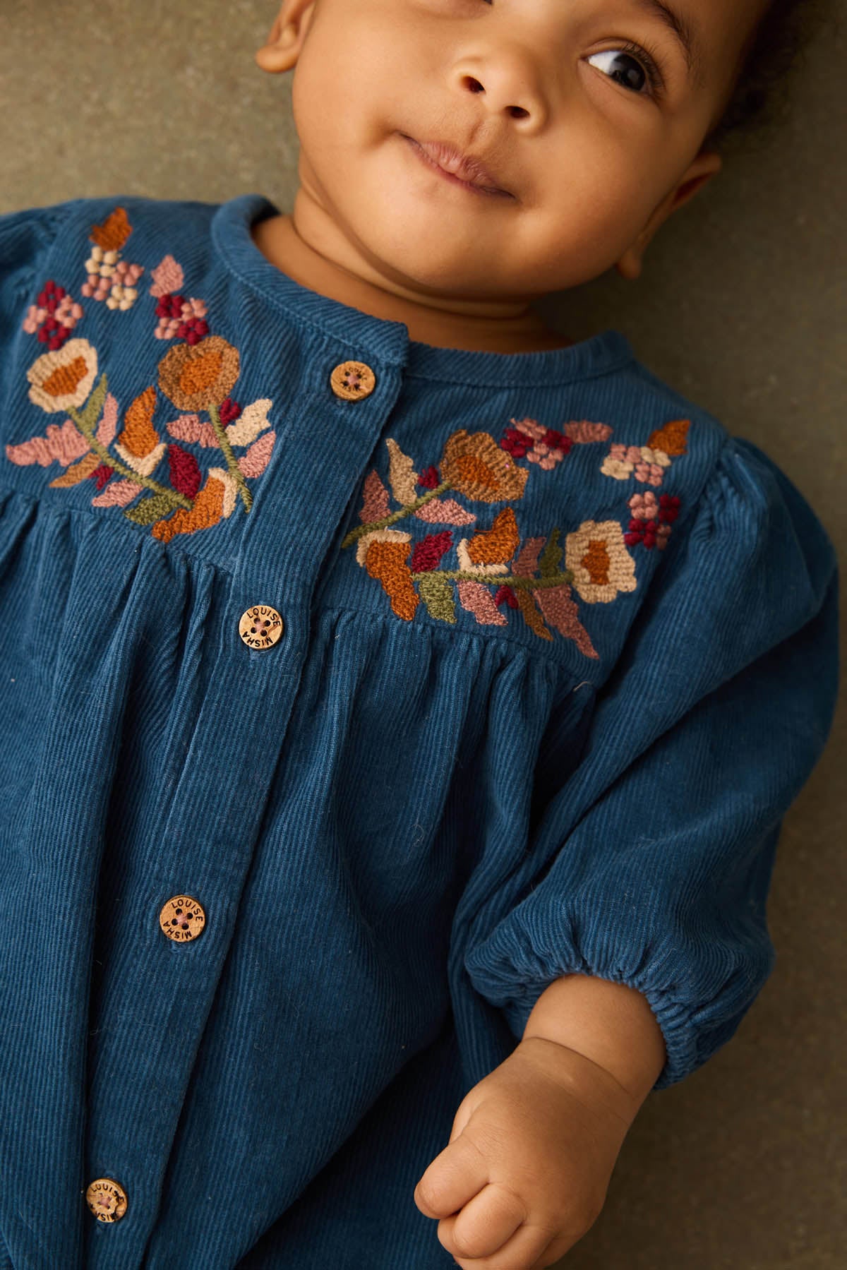 - Broderies fleuries sur le plastron réalisés artisanalement à la brodeuse à pédale.