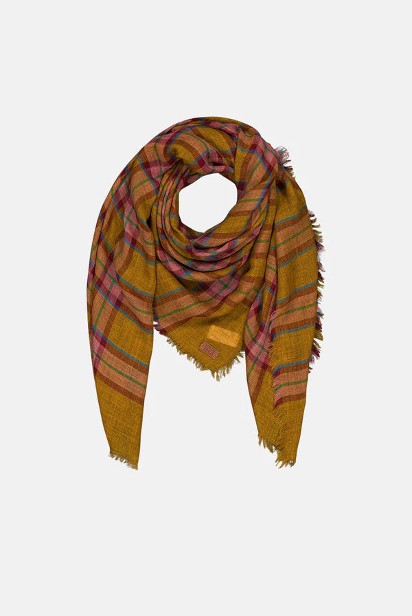 L’écharpe Mekness est confectionnée en étamine de laine douce, arborant un motif fleuri distinctif signé Louise Misha ainsi qu’une élégante frise. Elle se distingue par ses bords légèrement effilochés pour une touche décontractée.