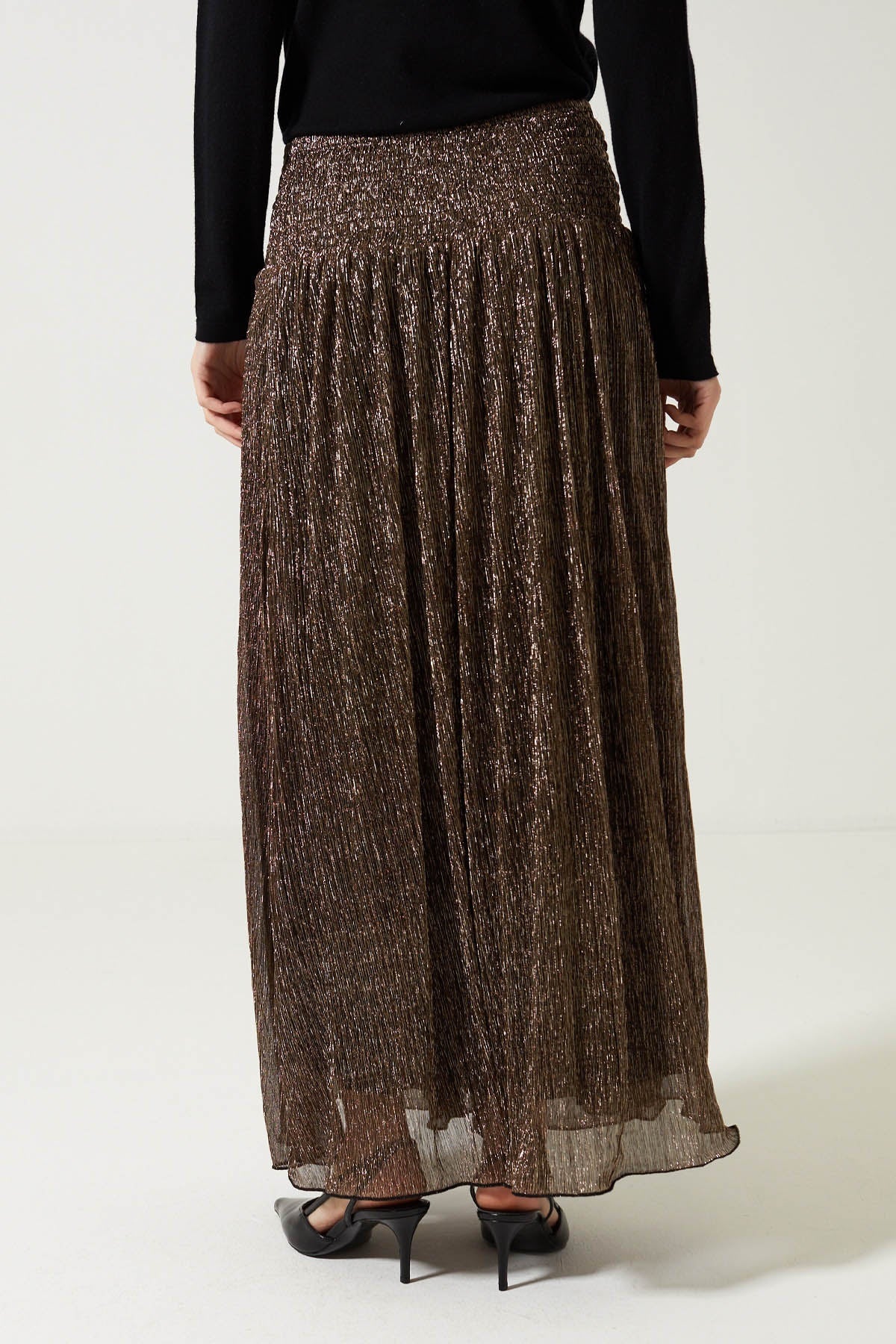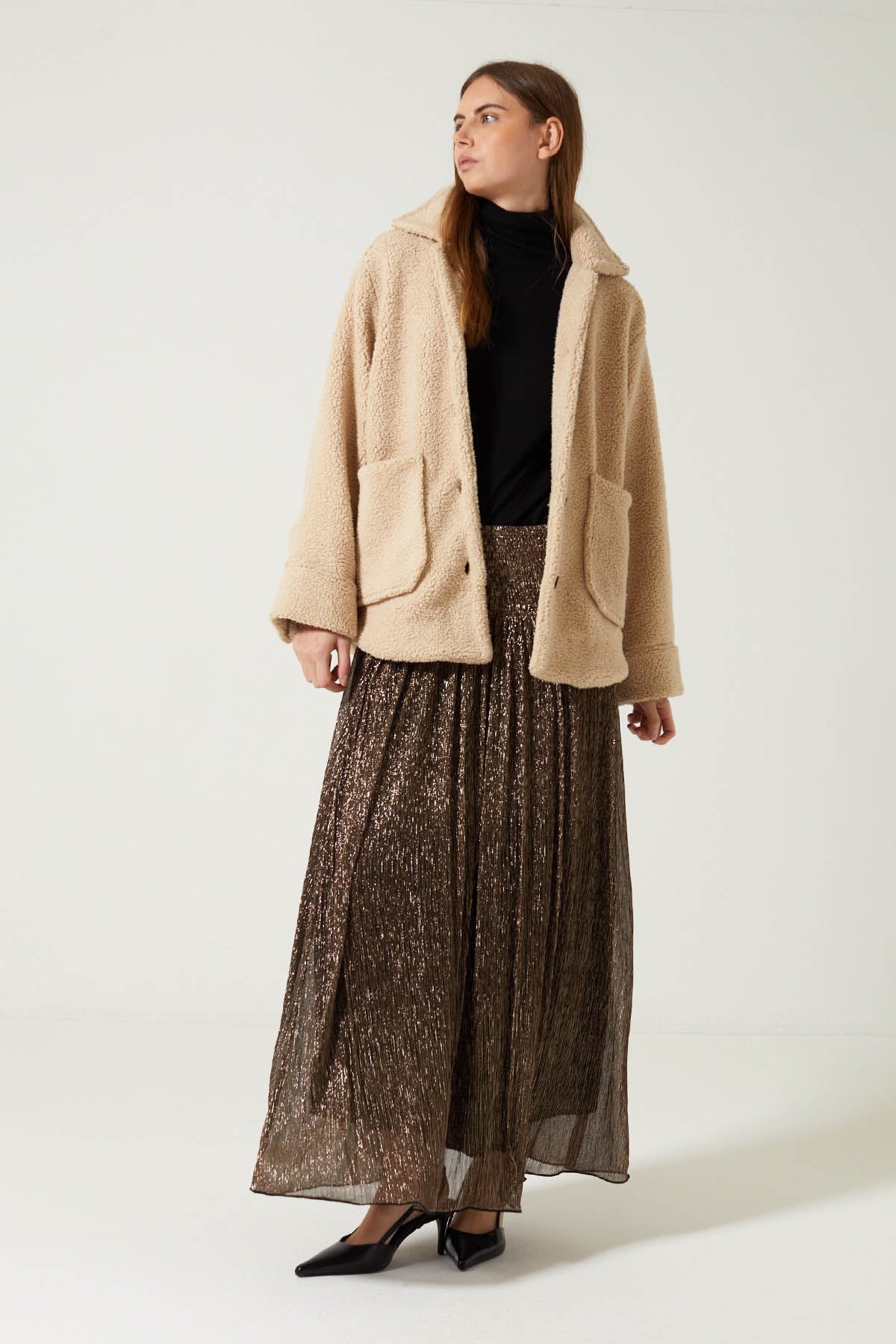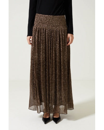 La jupe Assia de la marque Charlie Joe, se distingue par sa coupe longue et légère agrémentée d’un tissu délicatement métallisé aux nuances subtiles. Sa taille smockée garantit un confort optimal tout au long de la journée. Cette pièce élégante valorise une silhouette féminine en offrant des mouvements fluides, tandis que ses reflets dorés captent la lumière à chaque déplacement. Idéale pour un look raffiné, elle s’adapte aussi bien à une tenue décontractée avec un pull ou un t-shirt qu’à un ensemble plus sophistiqué pour la soirée. Adoptez-la sans hésitation.