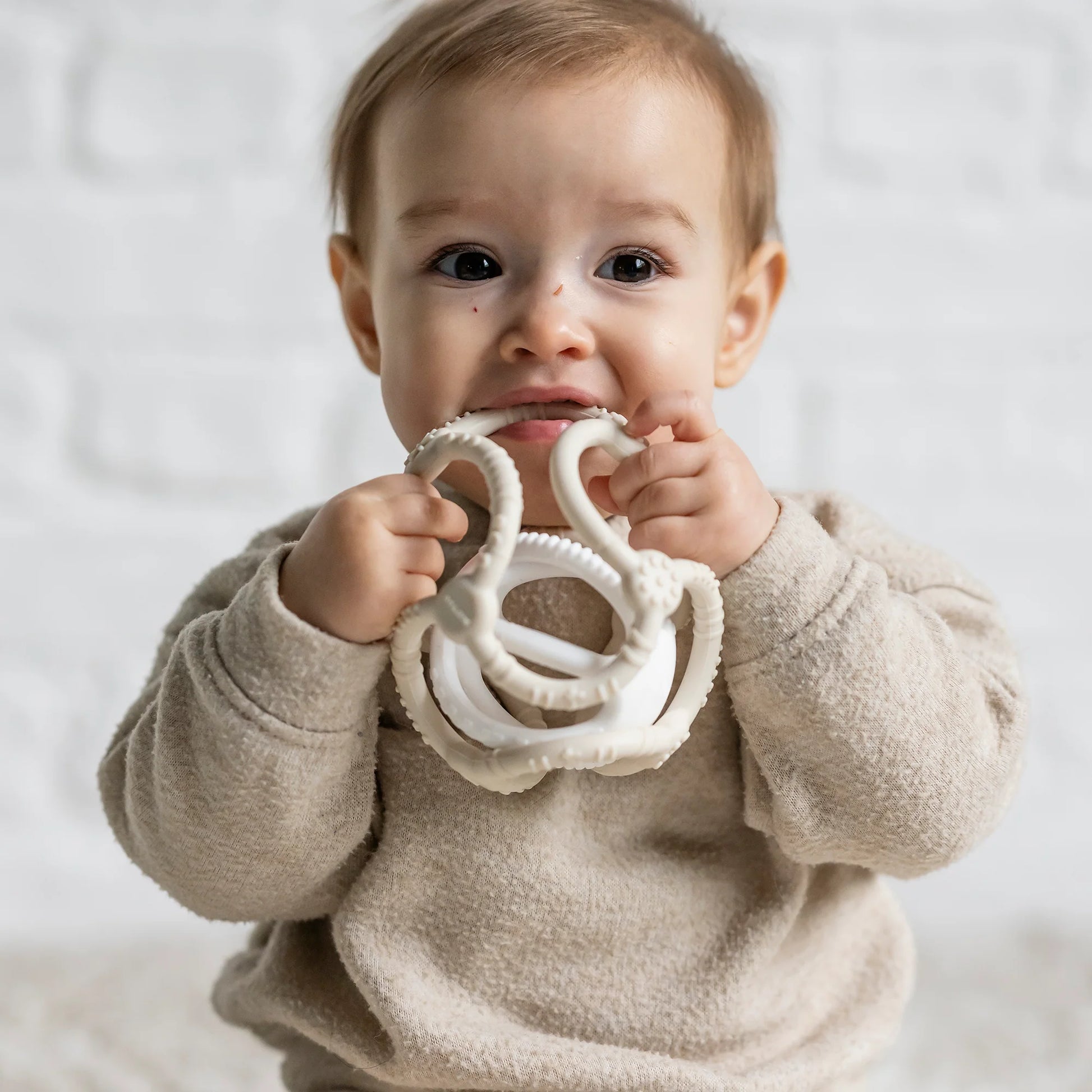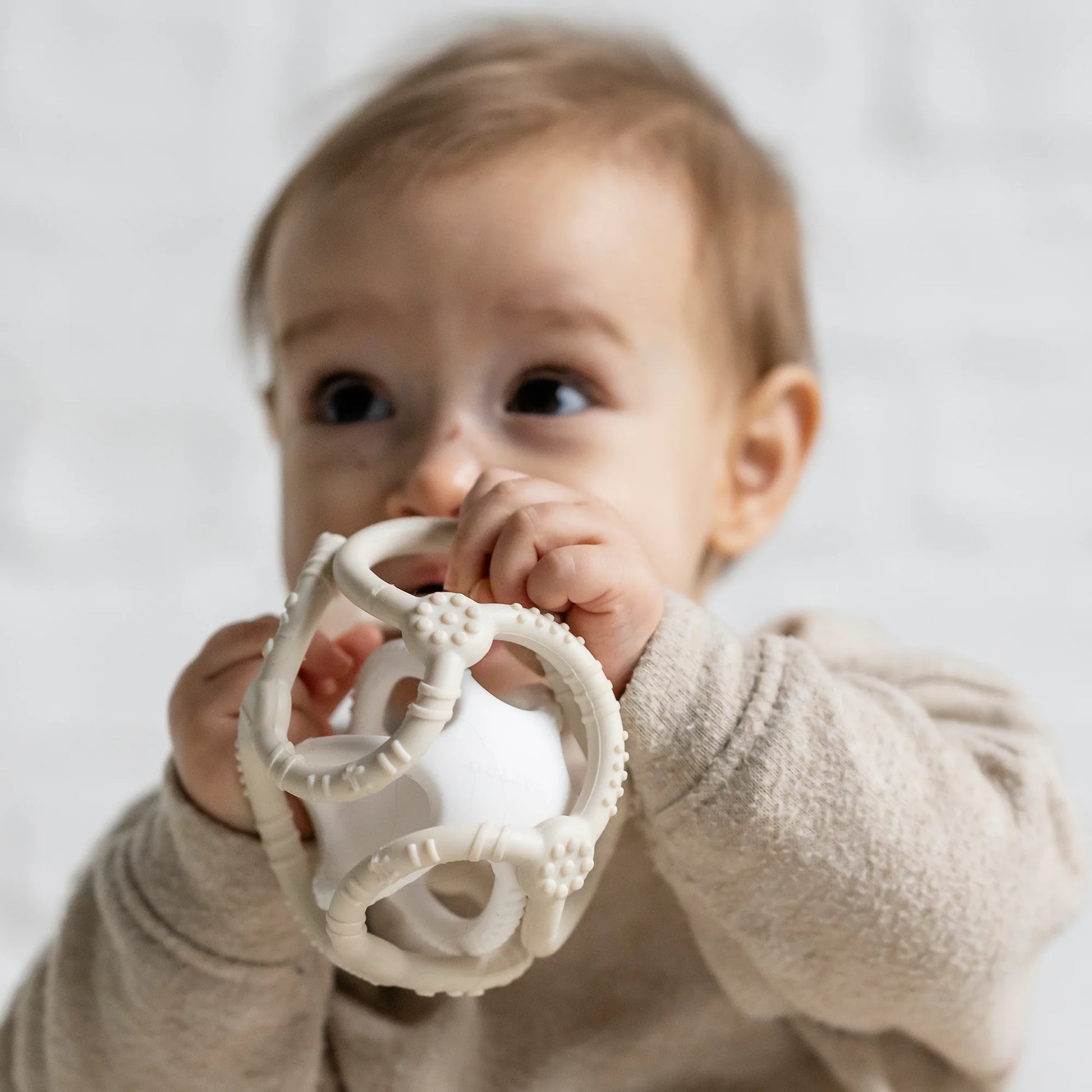 Les structures variées et les éléments flexibles stimulent le développement sensoriel, tandis que la forme ergonomique s'adapte parfaitement aux petites mains.
