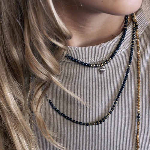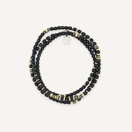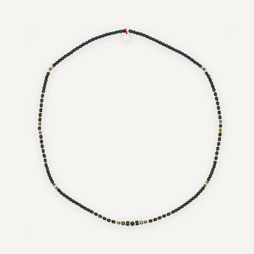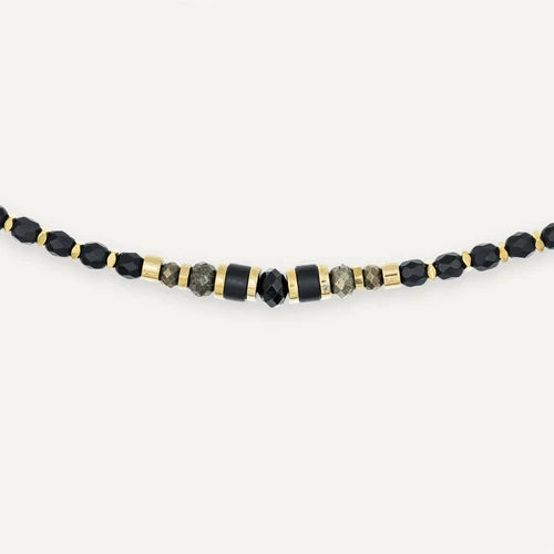 Incarnez la puissance et le mystère de la panthère noire avec le ZURI - Noir Mat. Ce bijou associe perles de bohème, pyrite et agate noire, et peut se porter en collier ou en bracelet triple tour. Le nom Zuri, qui signifie « belle » en swahili, souligne l’élégance et la grâce inspirées par le félin.
